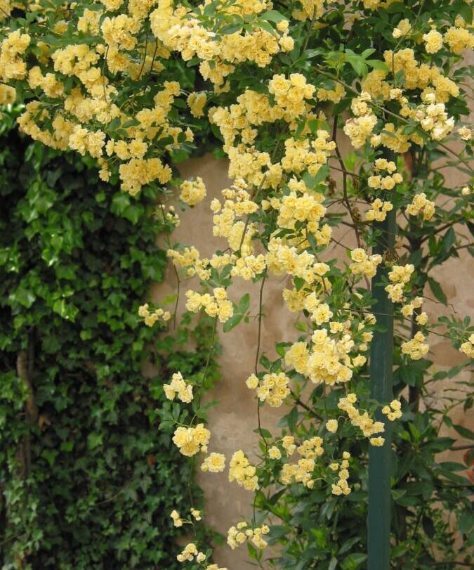 Pin It detail blauwe regen hier zie jezowel detail bloem als blad van akebia gele roos met terra achterwand gele klimroos soort onbekend tegen terra muur